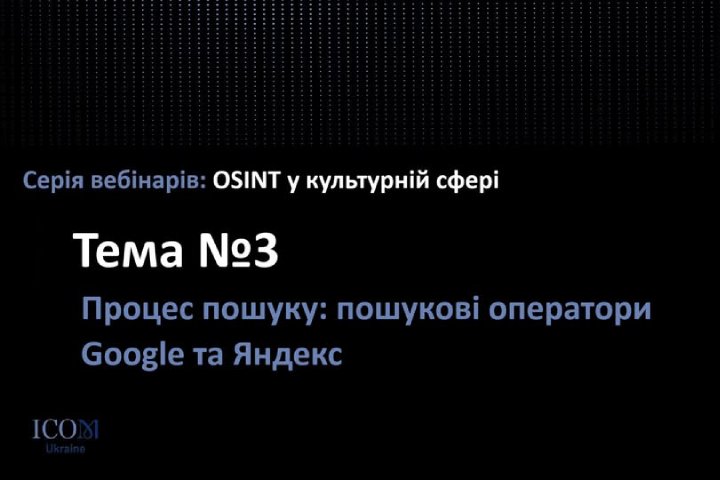 Запрошуємо на третій навчальний вебінар «OSINT у культурній сфері». Тема вебінару цього тижня «Процес пошуку: пошукові оператори Google та Яндекс». Лектор - Олександр Пирожков, OSINT аналітик, тренер з медіаграмотності.